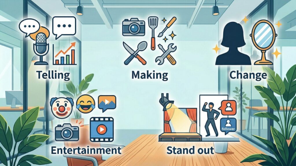 「人に見られたい」「注目を浴びるのが楽しい」って人、実はインスタにめちゃくちゃ向いてます。踊ってみた、リズム系の動画、トレンドのチャレンジ系コンテンツ……そういうのに挑戦することで、「この人に会いたい」「このお店のオーナーさん気になる」って思ってもらえるんです。アイドル的な存在感が、集客に直結することもある。 —自分の「楽しい」をSNSに変換しよう